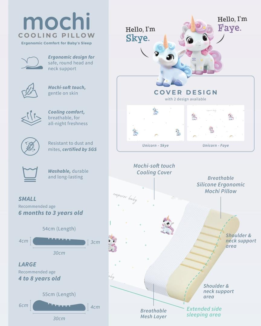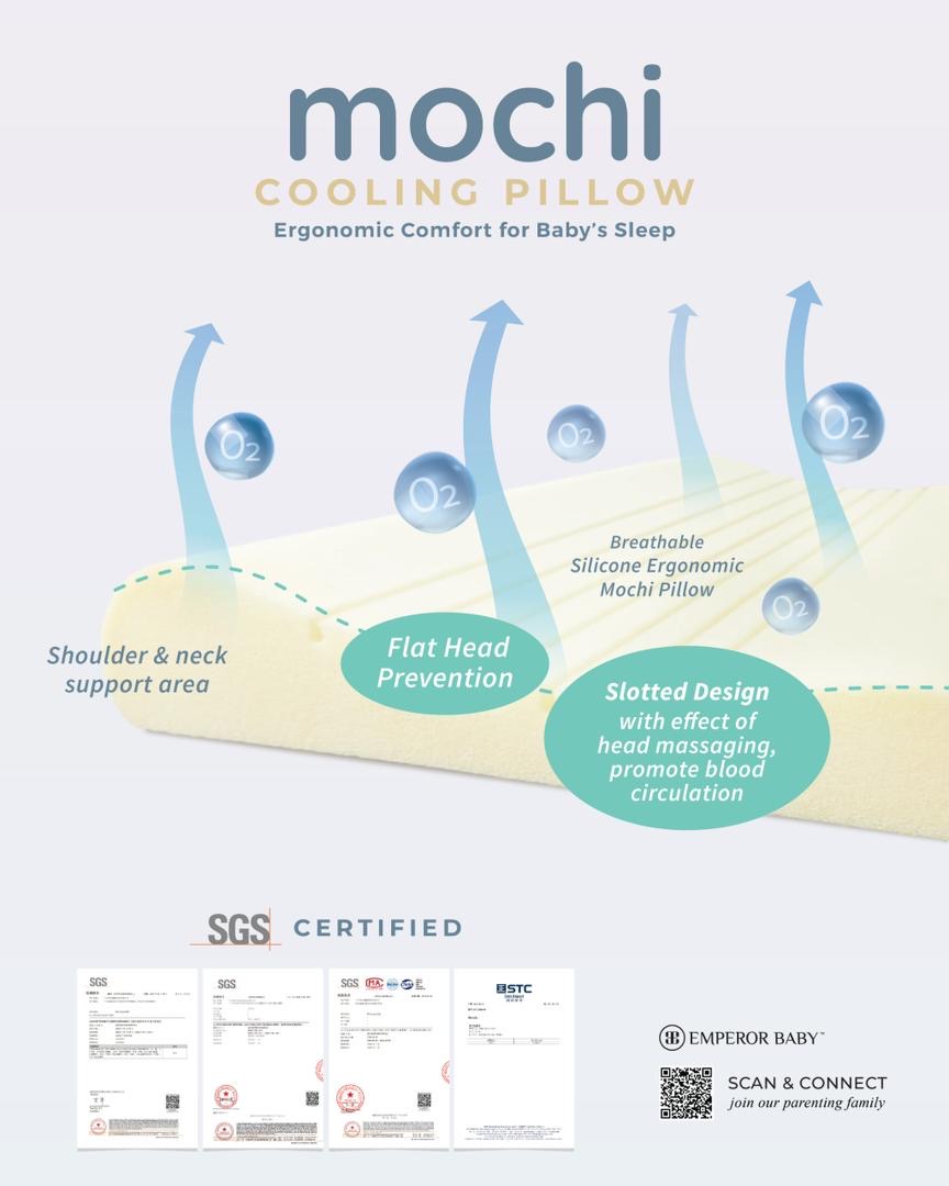 Give your little one the sweetest, coolest sleep with the Mochi Cooling Pillow — ergonomically designed to support your baby’s head and neck while keeping them cool and comfortable all night long.