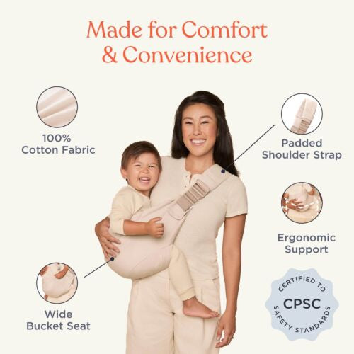a simple, compact, hip-carry sling designed for older babies (around 6 months to 4 years/17-45lbs) offering easy one-handed support for quick ups and downs, featuring one pocket and a very compact design, contrasting with Ergobaby's multi-position carriers, and available from sellers in Malaysia like Shopee. It's great for toddlers needing short carries, not for newborns, focusing on hands-free ease at the hip.