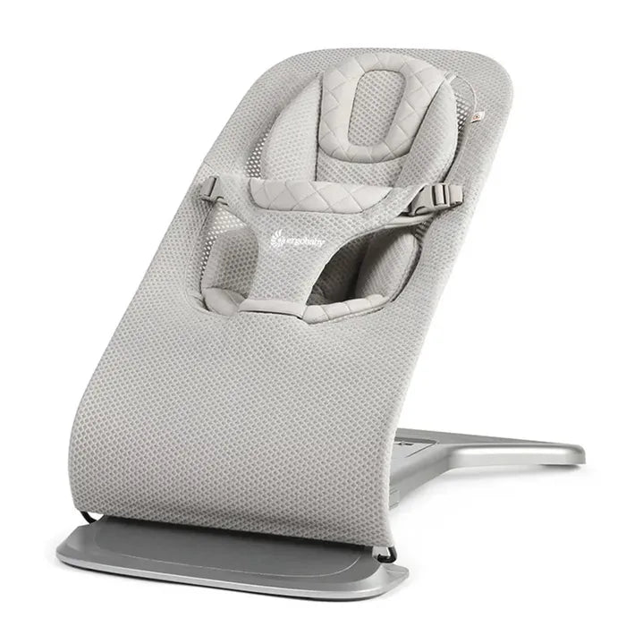 COZY & BREATHABLE: The baby bouncer chair features soft knit and breathable mesh fabric to help keep baby comfortable. The Ergobaby Evolve Bouncer baby seat cover removes easily and is machine washable to support everyday use and cleaning.